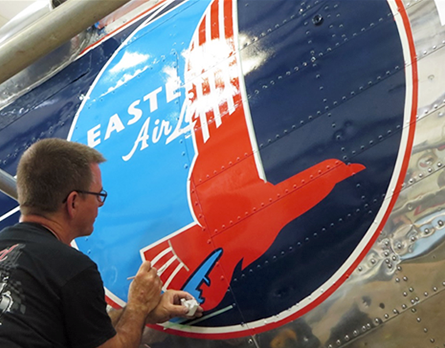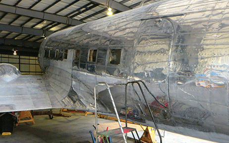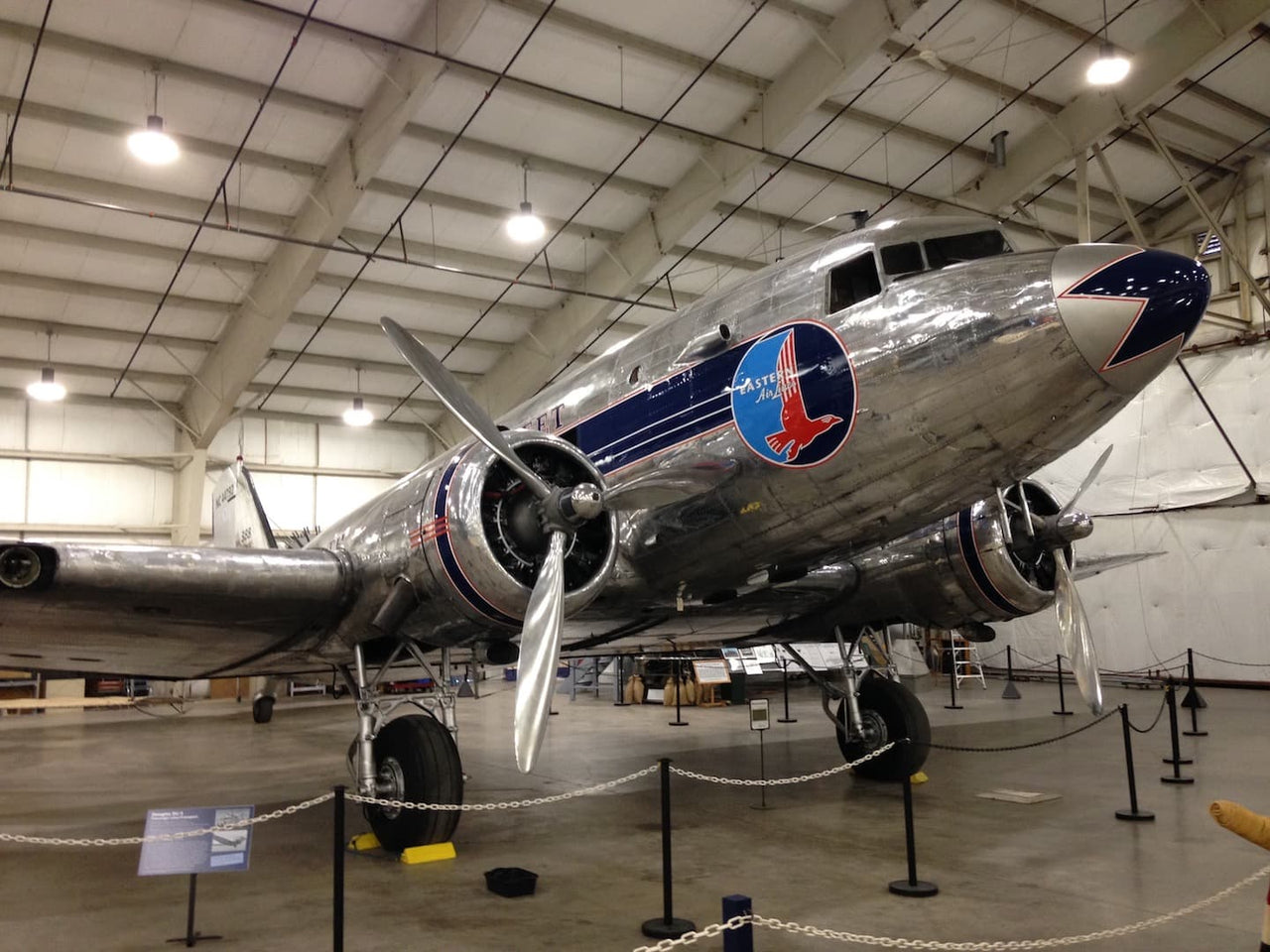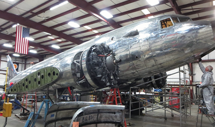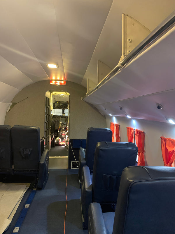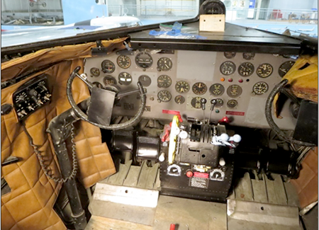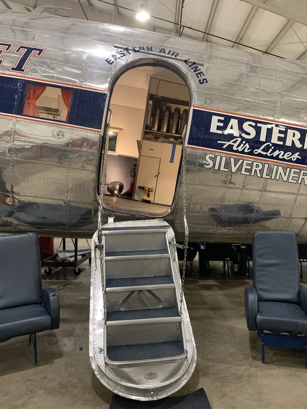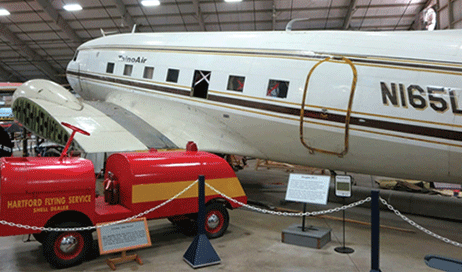 The Air Museum's DC-3 was one of thirteen DC-3-454 transports ordered by American Airlines but taken over by the Army Air Force as a C-49J while the plane was still on the Douglas production line in Santa Monica, CA. The completed C-49J, Serial Number 6314, was delivered on November 14, 1942 and remained within the United States during WW2 transporting troops. This aircraft was released from military service on April 3, 1945, converted back to a DC-3 and re-certified by the FAA on October 12, 1945, and was subsequently operated by Eastern Airlines, Purdue University, Basler Flight Services, and Florida Airmotive Services. After accumulating 53,434 flight hours, the Museum purchased this aircraft on November 1, 1992 after which it was flown to Bradley Airport and put on public display.