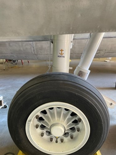 The Tracer’s main landing gear’s signage was sourced and installed.