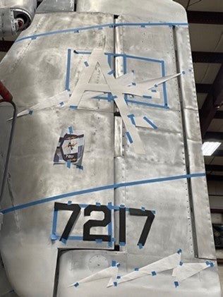 Both Vertical stabilizers/rudders are being prepared for refinishing and signage.