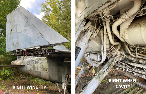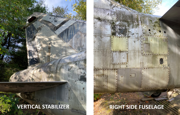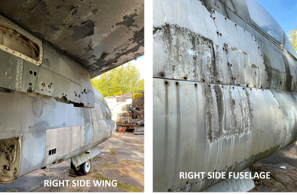 Aircraft surface conditions after being subjected to more than 10 years of unprotected, outside storage.