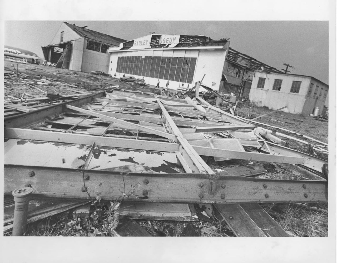 JUST BEFORE 3 PM ON OCTOBER 3, 1979, AN F4 TORNADO TOUCHED DOWN IN NORTH-CENTRAL CONNECTICUT. IN LESS THAN 10 MINUTES, IT CARVED A PATH OF DESTRUCTION 11 MILES LONG THROUGH WINDSOR, WINDSOR LOCKS, AND SOUTHERN MASSACHUSETTS. OUR MUSEUM, KNOWN BACK THEN AS BRADLEY AIR MUSEUM, TOOK A DIRECT HIT.